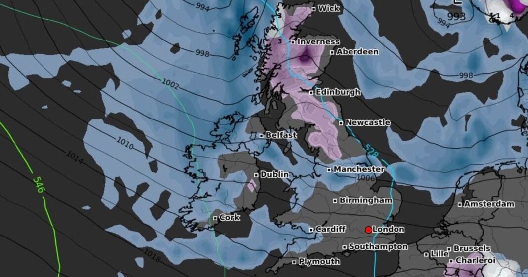 Britain is on track to encounter a substantial 320-mile expanse of snow over the upcoming days due to a drop in temperatures starting this weekend. According to the latest weather data from WXCharts utilizing Metdesk information, a vast area stretching from Leeds, England to Wick in Scotland is anticipated to be covered in snowfall by November 5. Conversely, other regions in the UK such as Northern Ireland, Wales, and southwest England are expected to receive rainfall, while London and parts of southern and southeast England are likely to remain dry.