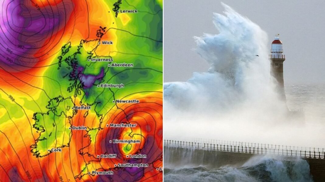 A weather system named Storm Benjamin is posing a significant risk to life as it is expected to bring wind gusts of up to 70mph to eight counties in the UK. The storm, currently located over northern Spain, is forecasted to reach the UK by 6pm today.